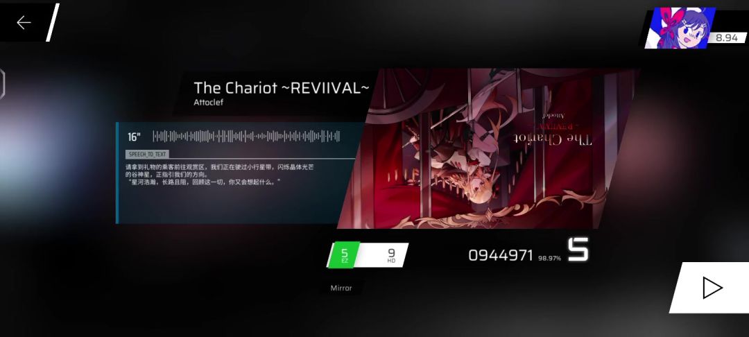 看到更新 听说玩具铺面都很有趣打算去“找虐”(感受下强度.毕竟还在过“新手教程”)结果发现联动曲一个都没打过开始打后,被气笑了发现打联动的铺面都让我有种“手指不属于自己的美”因为感觉状态有好转,觉得应该不至于然后找了首比较熟,相对吃基本功的差点蓝V了(上次是A 这个号最高S)(曾经蓝过,但退游一年+换手机就不行了)总结下来所以至少读谱和基本功还行(打打Lv11及以下/HD够