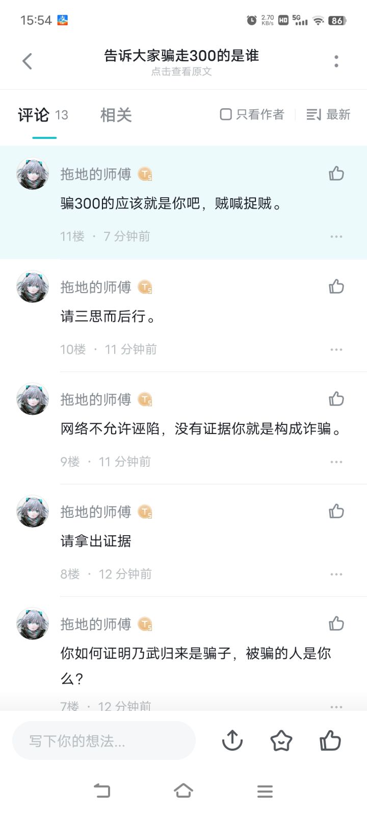 我在群里被海江骂截图我会一直留着 我在tap发截图 曾经历过禁言 经历过被删帖 经历过打码 我就是想等个结果 如果有质疑我可以给你发截图 我为我说的话可以承担法律责任