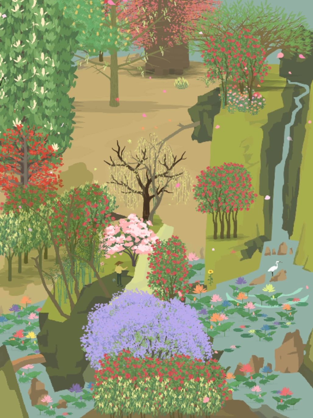 友友们好,有位山友想看看我夏天(如图)山头是如何种出来的,我把自己的一些想法写出来供大家参考,第一次写攻略可能会表达不清楚,有问题可以提建议~ 1.先确定自己山路位置,种植时避开 2.山路建议种矮树;比如我山下的山路是樱桃和梅交叉,这两种高度相似;桃是最矮的,我种植在云上左边。树种高度可以参考小水攻略 3.确定好种植山路的种子以后,建议多屯种子之后统一种植,这样路会比较齐,山路能宽不能窄,所以两侧