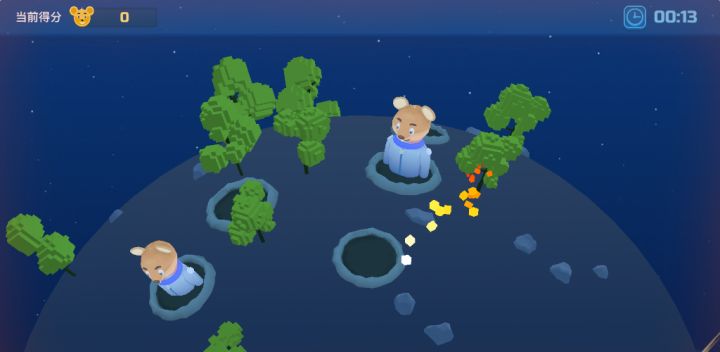 在倒计时结束之前打越多的太空鼠可以取得越高的分数,小心不要打到炸弹!