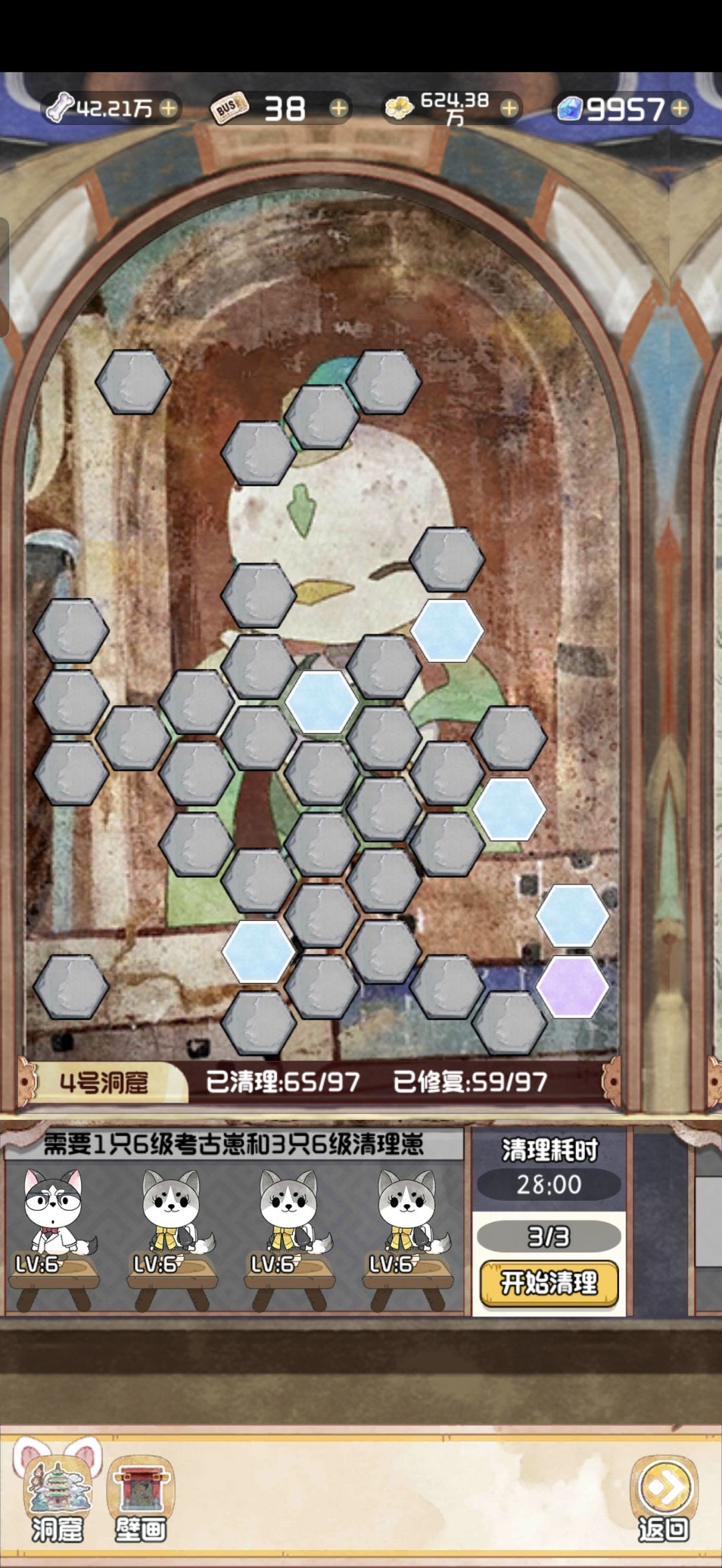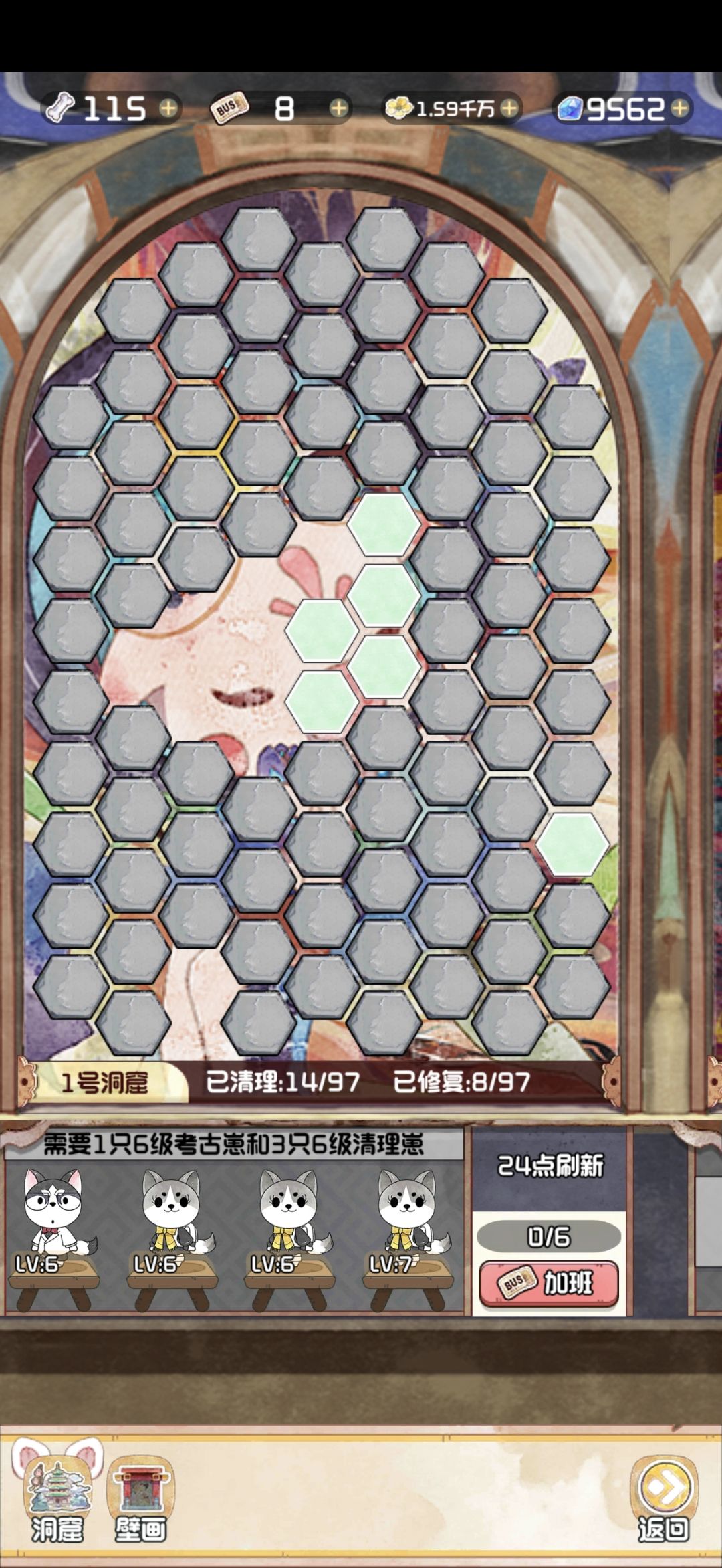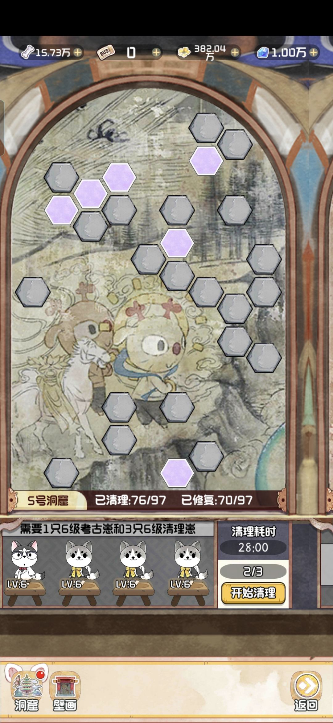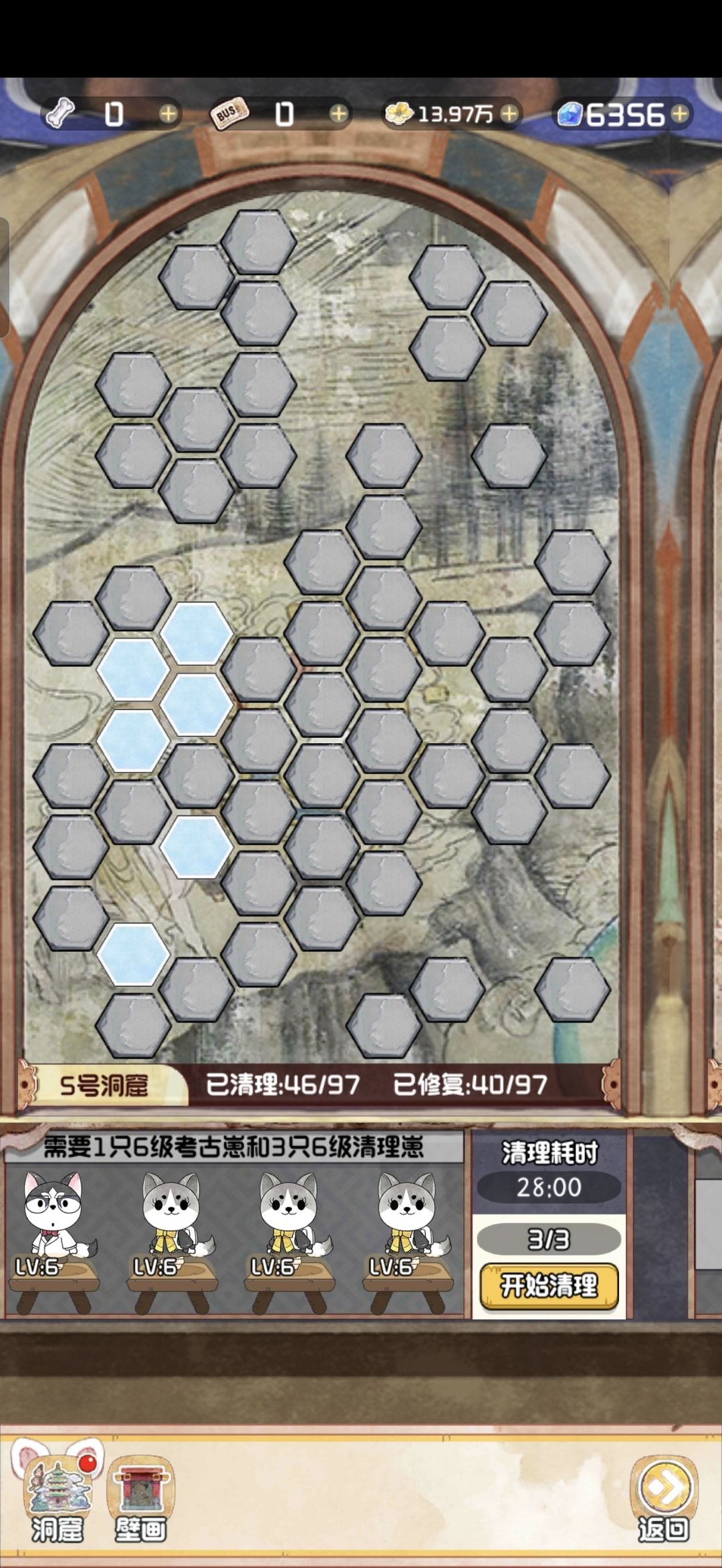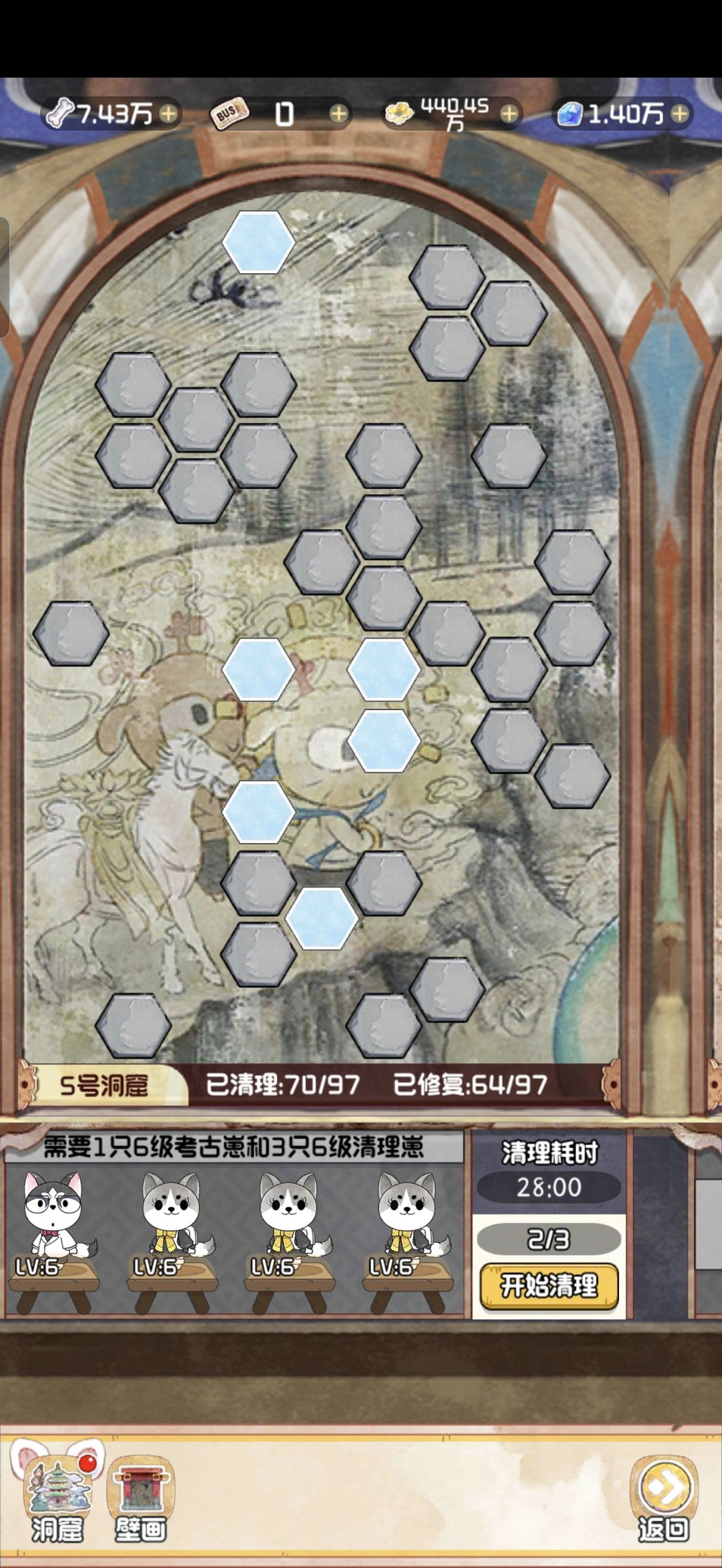 12.28 随着版本今天的更新,云顶洞窟的大饼也是终于烙好了。 其实核心机制就是狗子探险。你可以理解为换了一款小游戏的老探险。只不过这里的文物碎片是靠通关小游戏获得,狗子是用来开启锁定的关卡。 里面主要有两个游戏,一个是数涂,一个是拼图。数涂过关之后可以获得文物碎片和拼图碎片。拼图每拼完一个完整的,可以增加1500点人气值。这个还是很可观的,相当于一个天地兽首了已经。 拼图的游戏机制就不赘述了,相