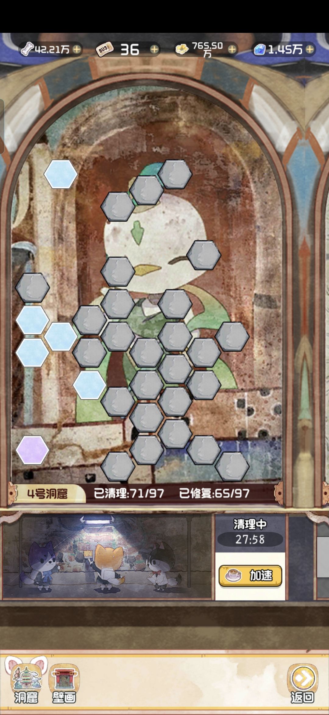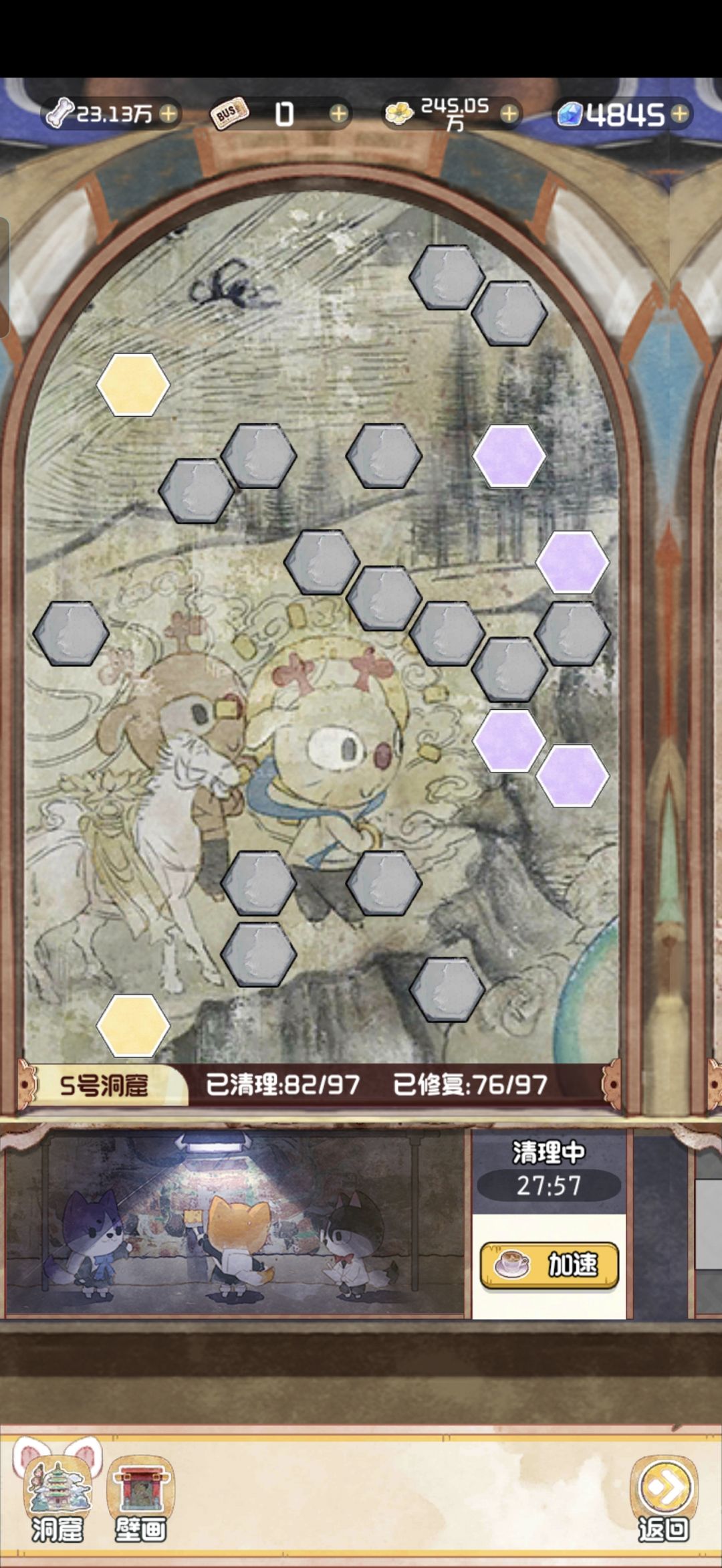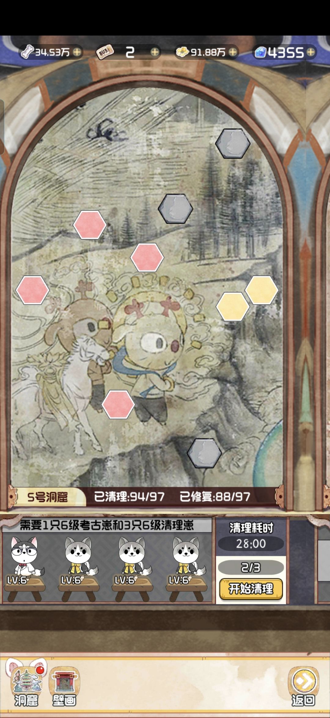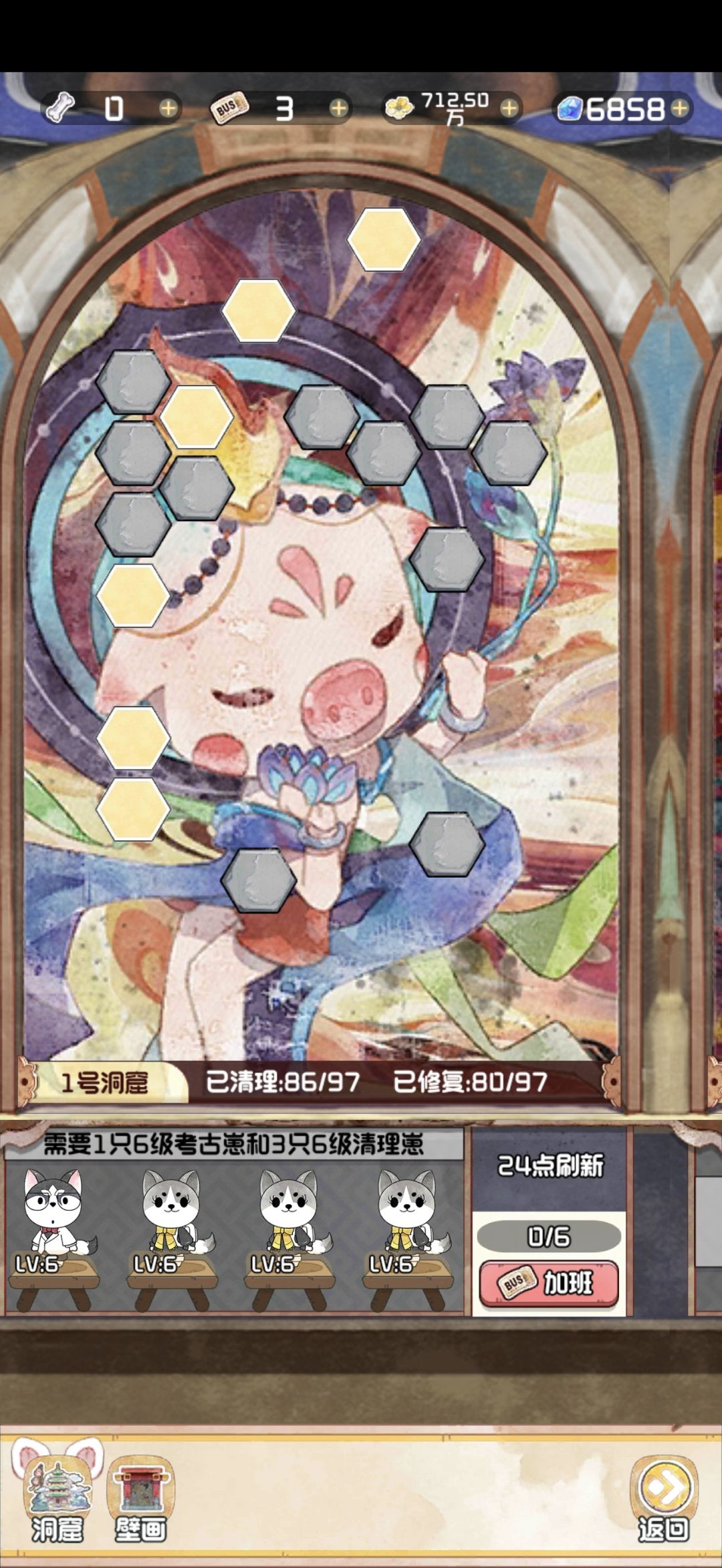 12.28 随着版本今天的更新,云顶洞窟的大饼也是终于烙好了。 其实核心机制就是狗子探险。你可以理解为换了一款小游戏的老探险。只不过这里的文物碎片是靠通关小游戏获得,狗子是用来开启锁定的关卡。 里面主要有两个游戏,一个是数涂,一个是拼图。数涂过关之后可以获得文物碎片和拼图碎片。拼图每拼完一个完整的,可以增加1500点人气值。这个还是很可观的,相当于一个天地兽首了已经。 拼图的游戏机制就不赘述了,相