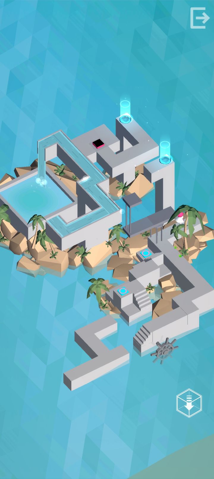 这就比较绝了,我可以从选关界面、进每一关的界面和点击进关的声音看出来,每一个无时无刻不在向纪念碑谷致敬。致敬也就致敬了吧,毕竟我又不可能去起诉你,现在这种机关解谜类的游戏不止你一个,而纪念碑谷又是很优秀的作品,向它致敬很正常。