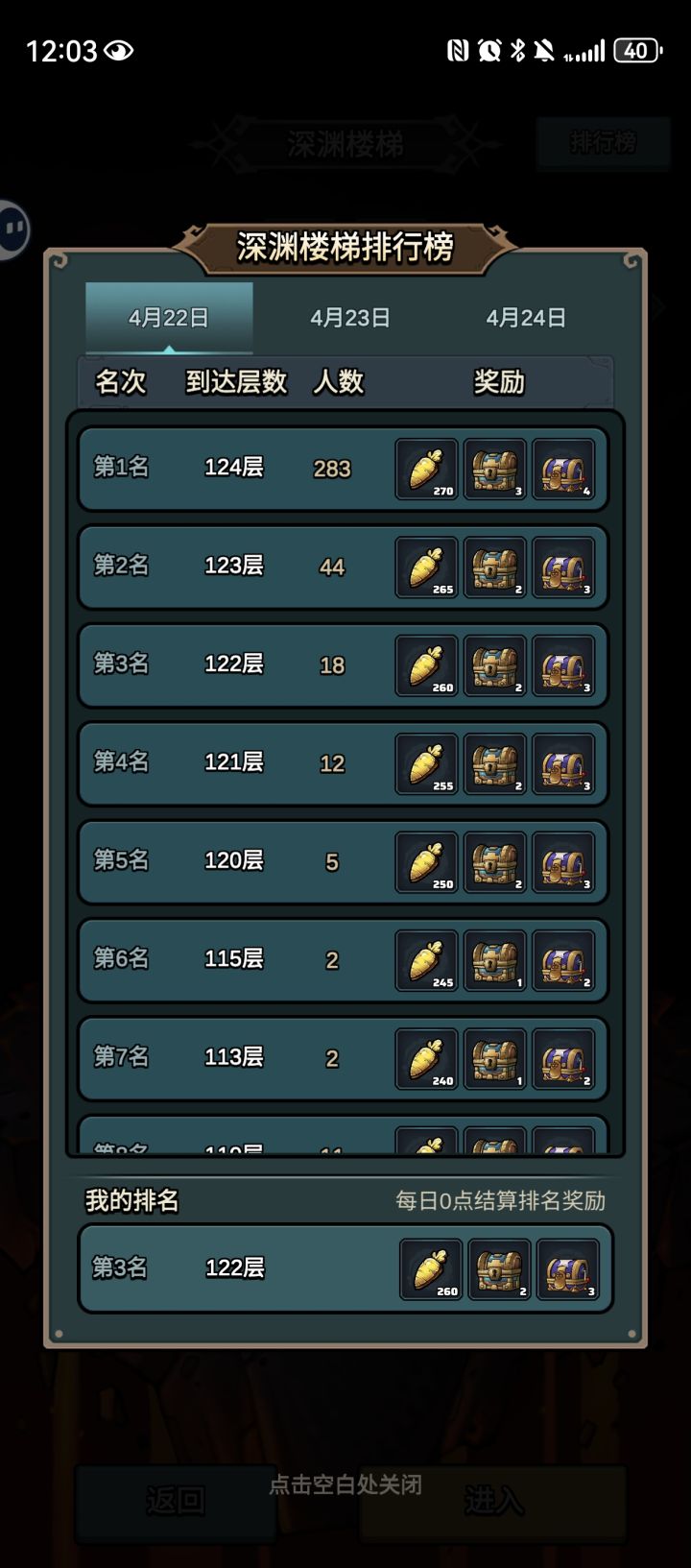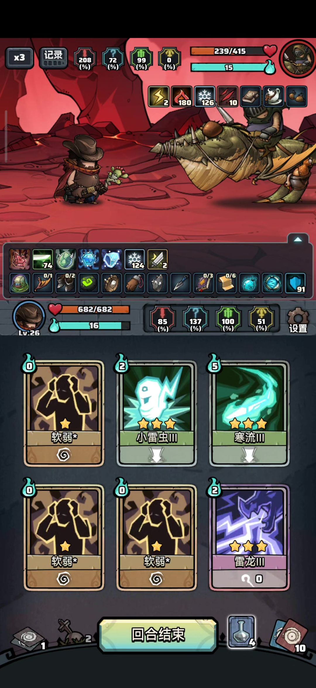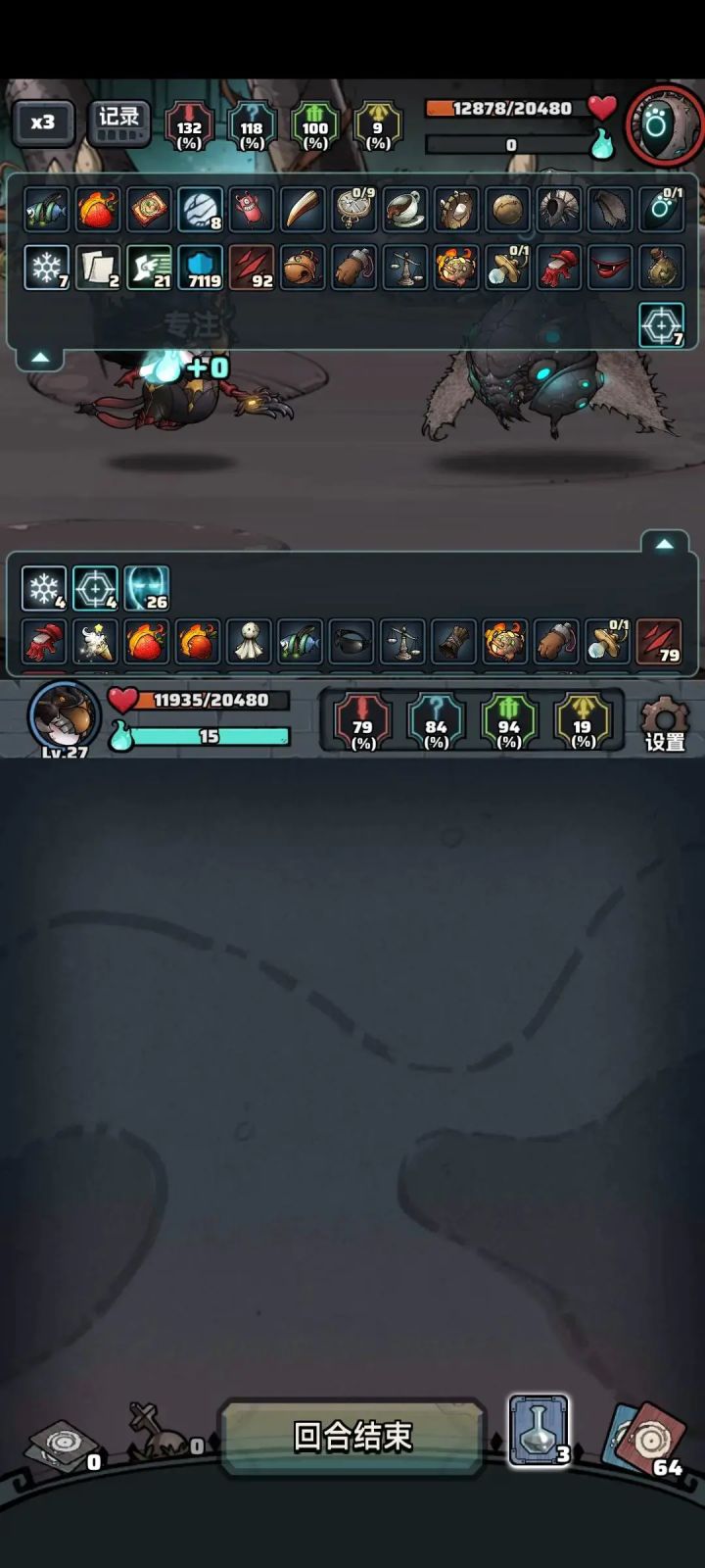 第一次打这个,一把游戏打了两个晚上,这是我不敢想的。打到123层的boss时,完全看不懂那是啥操作,完全脱离了掌控,boss一直在抢我的回合,然后血条一直在跳舞,甚至在最后一次被抢操作权时,双方的血条变成了在正和负之间跳动,然后莫名其妙就赢了到124真不想再打了,哪怕后面跳了几十层,还是感觉太漫长了