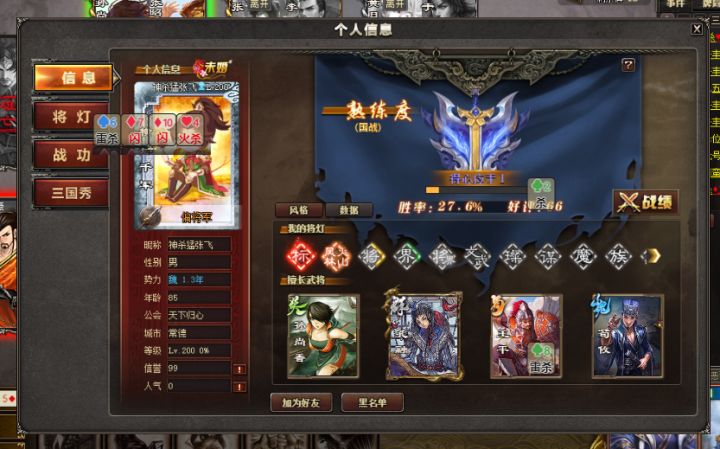 挂个逆天偏将军,因为队友顺他一下跑来杀队友,各位将军看到提前拉黑一下,我顺他是因为我是司马懿郭嘉,借个藤甲顶狮子回血一下,搜索:神杀猛张飞。游戏素质的话,嘴牌仇杀我也做不到几十局都不做,但这种确实莫名其妙了。