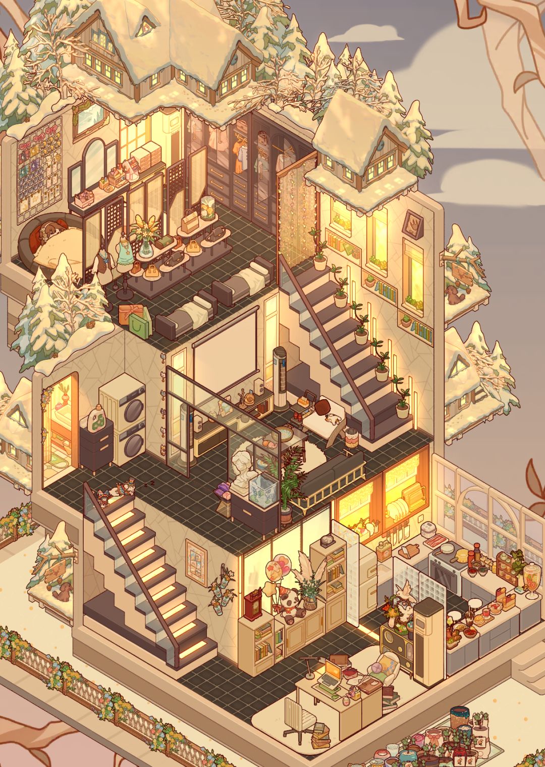 挑战最小蜗居 最近看了其他小伙伴的最小蜗居装修方案,我觉得好有趣啊,其实生活中就应该用实用舒适合理的方案去打造舒适生活! 这个游戏已经被我当成是锻炼一切关于空间管理设计、家居生活、商业经营的工具啦! 这次用最小的户型完成基本生活空间——厨房,餐厅,卫生间淋浴间,卧室,客厅/书房。 把我自己最看重的功能尽量都放进去了,以下是简单解说: 厨房: 抽油烟机,厨房容易油腻,如果是开放式厨房更加所以要有抽油