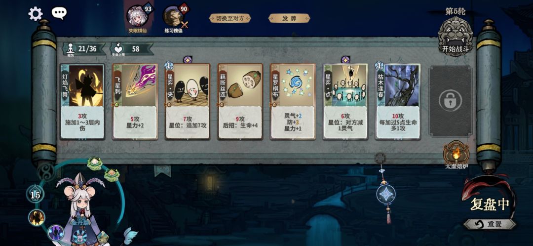几张图分别是:前期卡组+中期卡组+成型三动杀卡组+成型四动杀卡组+成型乾梅断卡组 副职选命理师(核心牌:恶劫缠身、血光之灾) 仙命选择:除了筑基期的 绛纱守护 不选外,其他基本必选。筑基仙命可选加卦象、加灵气、加修为的仙命 过渡思路:前期用星罗棋布、星弈·夹、揽雀尾、天命·飞逝等牌过渡 D牌思路:前期一般是少D,等到元婴开始大量D牌找杯弓蛇影 角色特点:曜灵抽牌多,一般修为会比其他角色高,越快上化