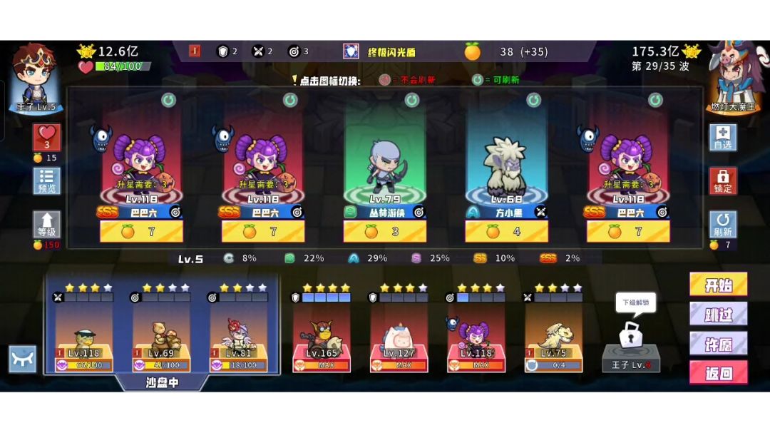 1.依旧每天熔炼50战斗鸡,鸡等级30以上再考虑熔其他红卡。 2.提升酒馆等级,上最高品质的伙伴,开始为出战伙伴找法强转装备(如图一),其他伙伴穿血量百分比装备用于探索,伙伴最终形态为2骑士,2不动之岳加15神使。 3.升级除橙卡外的所有家族,提升角色等级,穿法强转宝物(如图二)橙卡里只升橙子,女巫,大树,牛魔和地龙,其他用于熔炼。 4.尽可能去推关,越往后收益越高,鸡有一千多法强就可以通过黑暗符