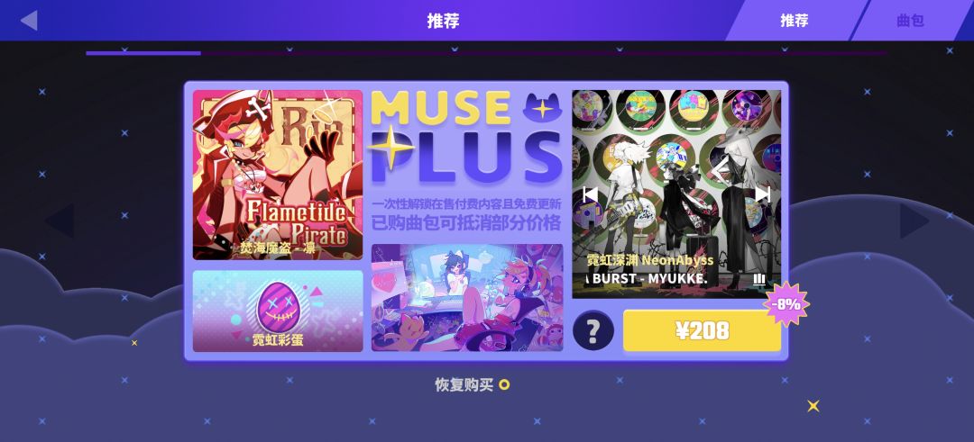 (由于迭代过快,本帖已稍显老旧,将随缘更新) 本帖最后于2022.2.6 07:24更新 很多萌新好像都还没搞懂内购和游戏数据互通的问题呢 那么我就来总结回答一下萌新的问题吧 我们首先要弄清楚你在哪些不同的平台或是系统游玩Muse Dash,我列出如下(正版渠道) 1⃣️.个人电脑(Windows系统端) 1.Steam平台 2.WeGame平台 2⃣️.Apple电脑(Mac OS系统端) 1.