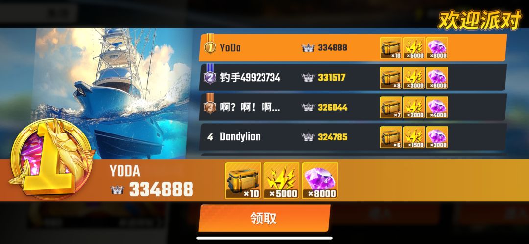 前期不要吝啬体力,把那些活动拉满,比如新人活动,锦标赛等。靠活动能获得更多体力,我新人活动运气好,拿了个第一,十个金箱,香的扣,还有几千钻石。 藏宝图就是一波富一波穷,看运气。运气好,锦标赛就能拿满奖励,这样你的体力足够挥霍了。 紫色武器60级,星级有红色就能钓所有的大鱼了(当然还是要有点技术)。 最近服务器受攻击,邮箱奖励也挺丰厚的。趁着这会儿钓更多鱼! 对决里的排位赛尽量拿前三,有金箱子,竞争