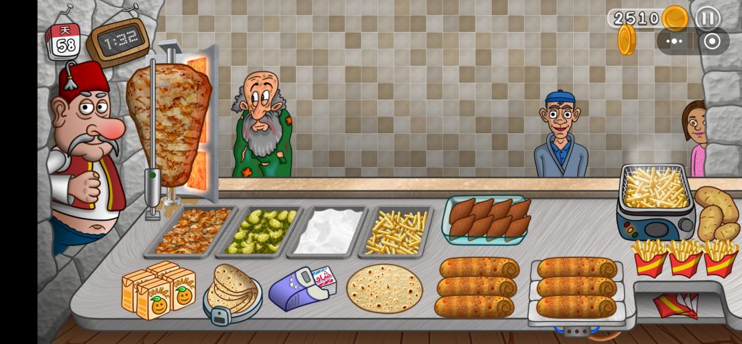 推荐大家先让工人去升级,稳赚不赔的,先不要去搞炸薯条或者糖浆啥的,也不用去把店面扩大。 你先攒钱搞点自动的,不然你忙不过来。等到你觉得忙得过来的时候再去搞糖浆跟炸薯条。 我的升级顺序:①工人②饼自动摊开③炸薯条更快④自动炸薯条⑤饮料杯自动⑥饮料自动装满⑦糖浆,糖浆升级自动⑧红薯(还有小偷的别忘了)⑩自动包装⑪不会烤焦⑫沙威玛自动 按糖浆、沙威玛(看起来像腊肠的)、酸黄瓜、白色的、薯条的顺序制作。 中