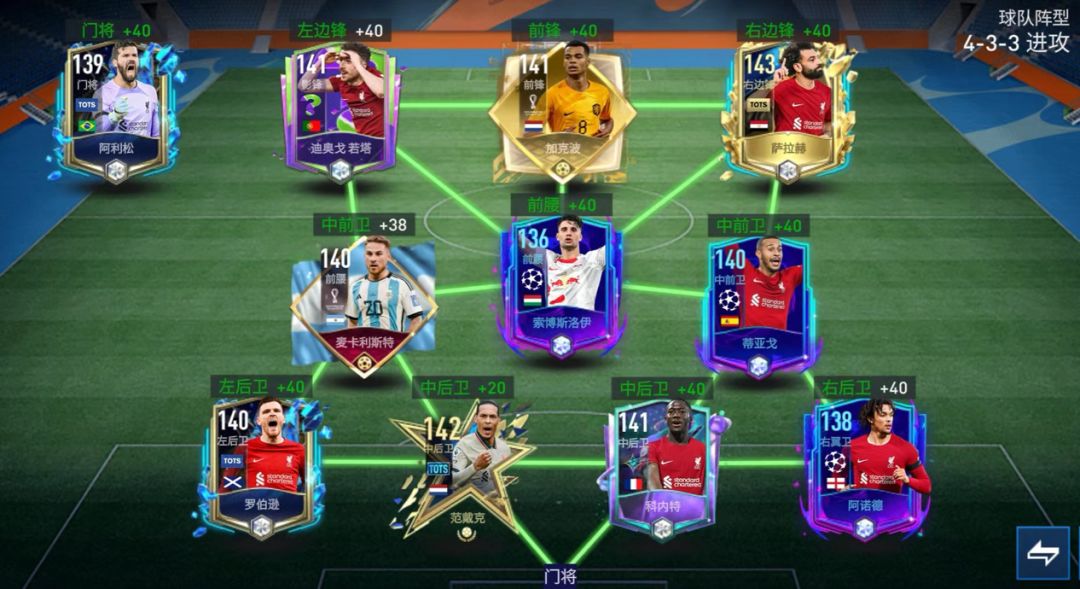 各位《FIFA足球世界》的玩家朋友们好,新赛季英超即将拉开帷幕。上赛季表现不尽如人意的红军利物浦,在这个夏窗经历了大量的人员调整。 引援方面,麦卡利斯特和索博斯洛伊强势加盟,离队方面,功勋队长亨德森和后腰法比尼奥都远走沙特。中场大换血的红军新赛季的表现将会如何呢?我们共同期待!在我们游戏中,利物浦队套一直有着较高的人气,而新赛季利物浦队套在我们游戏中也是表现不俗,下面由我带给大家带来详细的队套讲解