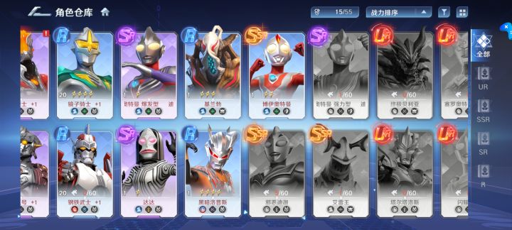 4、角色,现在出的角色不多,但是分的比较细,一些比较冷门的形态都有,这点我很喜欢,这也是我想要下去的最主要原因,很期待以后出的奥特曼和形态,但是反过来说现在看起来角色真的太少了,很多熟悉的奥特曼和形态看不到也挺失落的,希望后面能够持续优化,除了出更多的角色、形态之外,把建模和数值平衡修复一下