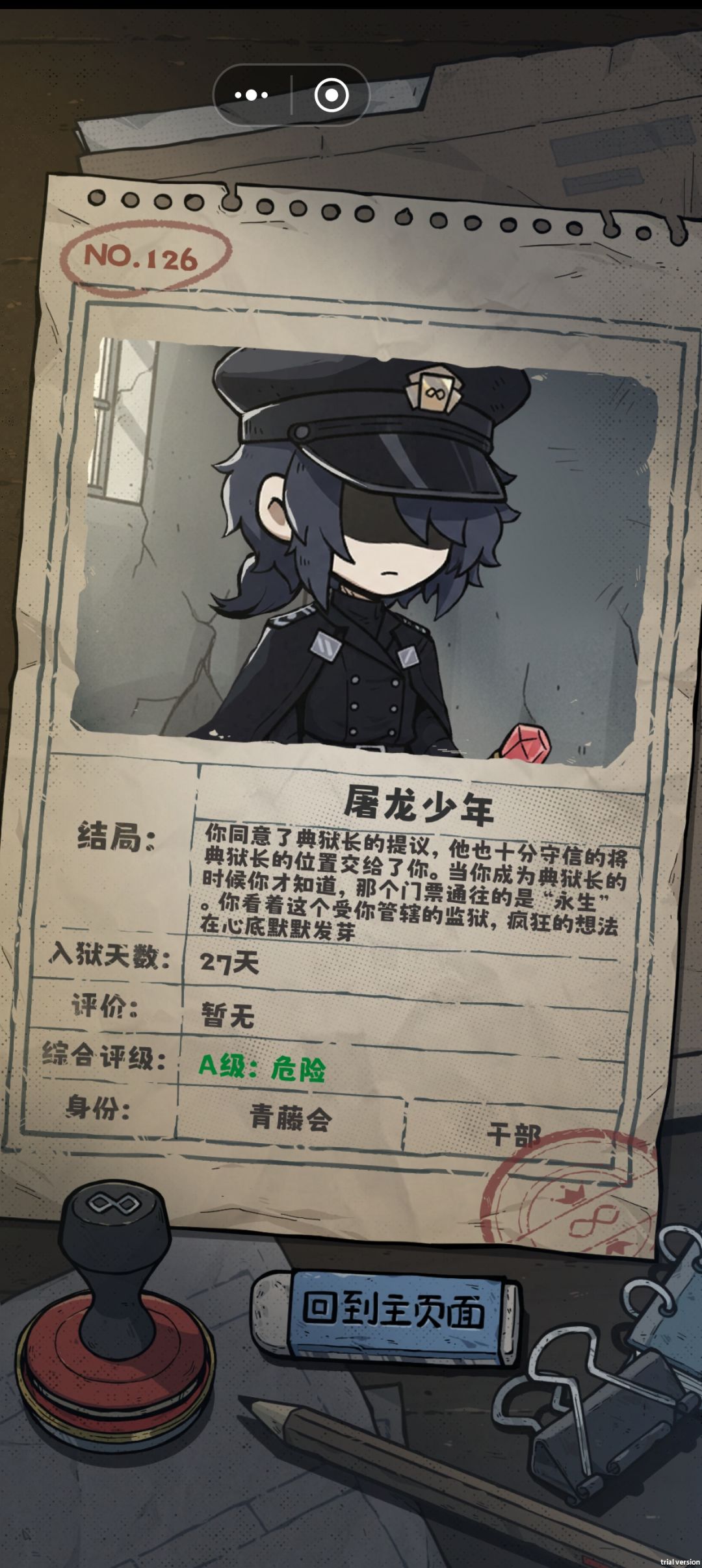 乌鸦面具开局。前四天凑齐50积分卡,后面和浣熊好感达到200正式创立灰影组织(注创建灰影成为首领后,不可参与掌门与青藤帮帮派活动自动退出),在连续刷满灰影帮派建设满20级后,将触发灰影之王的7天时间帮派任务,期间需要给狱警100张积分卡,给兔子凑齐100张普通食物卡,给虎哥凑齐50张绷带卡。即可达成此目标 注:在发育灰影帮派建设时,请不要将结局需达成的道具卖掉,否则可能会和我一样用乌鸦哥的技能。