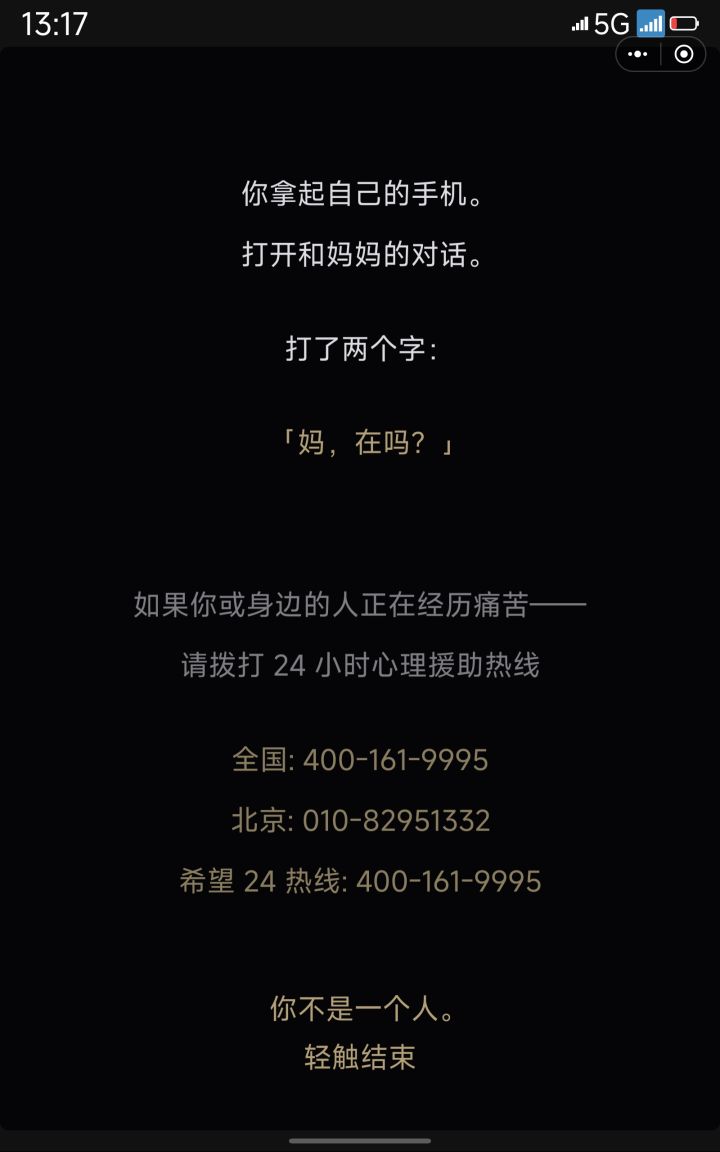 一开始以为是arg,虽然流程很短吧,但是立意很不错,看到最后真的有点感叹。有心理问题还是要及时看医生啊……