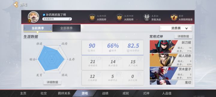 感觉超模还是多,节奏也快,刚回归甚至在中司三连败,直接给我打笑了,不过玩了一阵子手感回来还是能打开局面的,能感觉到游戏里面高手没多少了,或者是我段位没到那么高吧,之前很喜欢玩为崽,基本上都是大阴阳师就打为崽了,对手队友水平多少有点下降,你游人估计快要走光光了#决战平安京