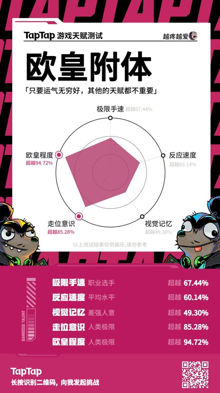 除了运气,简直一无是处,一无所有,#TapTap 游戏天赋测试