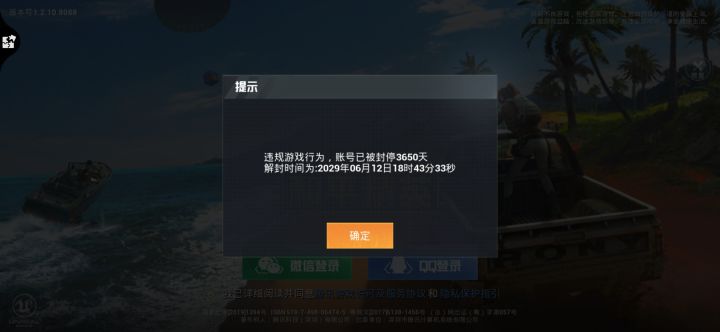 尊敬的和平精英官方客服您好: 本人游戏账号昵称:GP丶医疗兵,数字ID:452797873 登录账号:安卓QQ区,账号:895031964,于2019年6月12日上午时在登陆过程中被显示系统封禁,封禁提示为:使用模拟器在非手机环境下运行,封禁3650天 本人郑重承诺,自注册账号以来,始终严格遵守《和平精英》用户协议及游戏规则,从未使用任何外挂、修改器、脚本等违规工具,从未参与坐挂车、恶意组队、透视