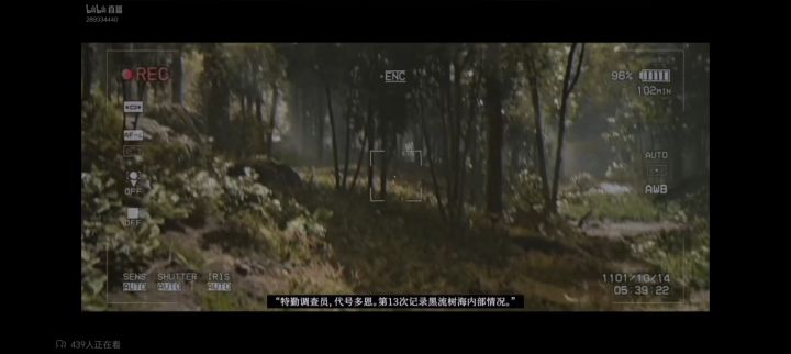 1101/10/14 清晨05:39调查员多恩与其队员福斯开始第13次树海内部记录,设备工作正常,影像正常1101/10/14上午10:34调查队多次经过相同标记物,疑似被困设备工作正常,影像正常1101/10/17下午13:25调查队被不可见的未知存在追踪,设备记录到未知生物或伴生现象设备工作正常,影像异常1101/10/18下午15:22调查队携带食物耗尽,队员福斯生食树海内