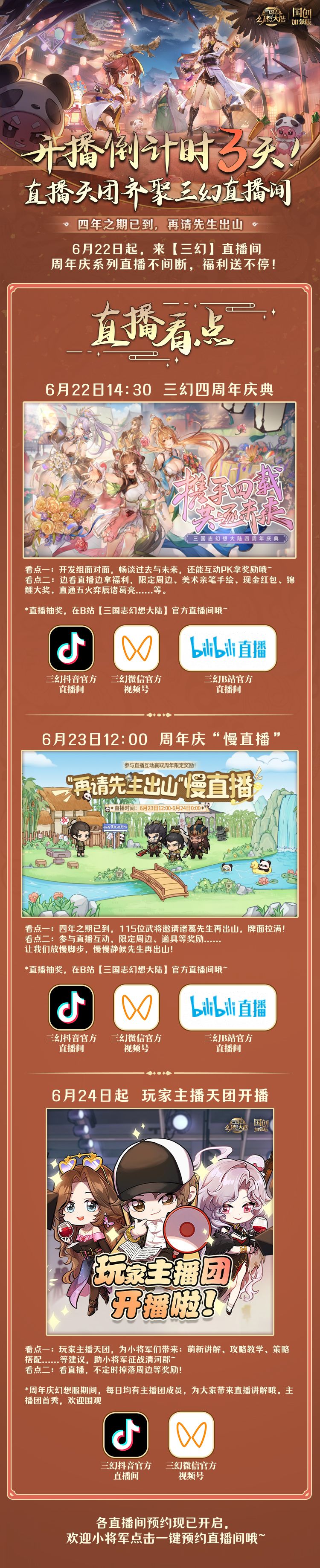 「三幻四周年」线下庆生会直播倒计时3天!天团齐聚三幻直播间!
