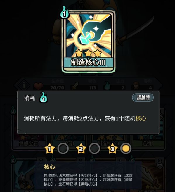 种族专属卡牌:”制造核心“,这张卡使用前请注意,它不管你有多少法力,使用后都会清零。最好的使用顺序是当你还剩余1点法力时使用,白嫖1层”能量核心“(每层能量核心下回合开始时可以为你增加1点法力)。