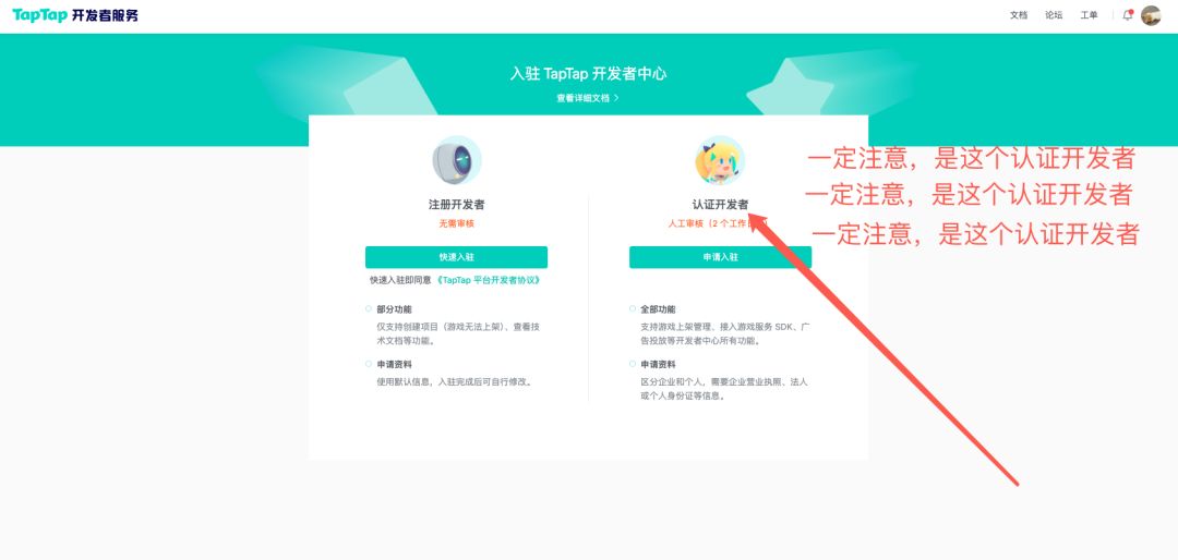 如已有 TapTap 账号,可直接进入开发者后台进行认证。