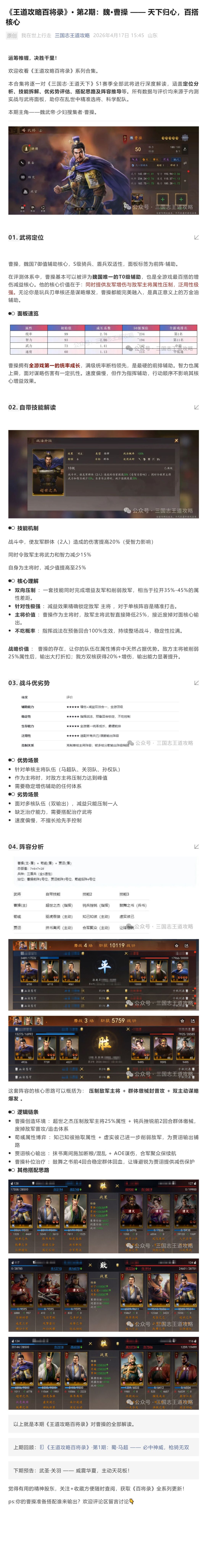 《王道攻略百将录》· 第2期:魏·曹操 —— 天下归心,百搭核心