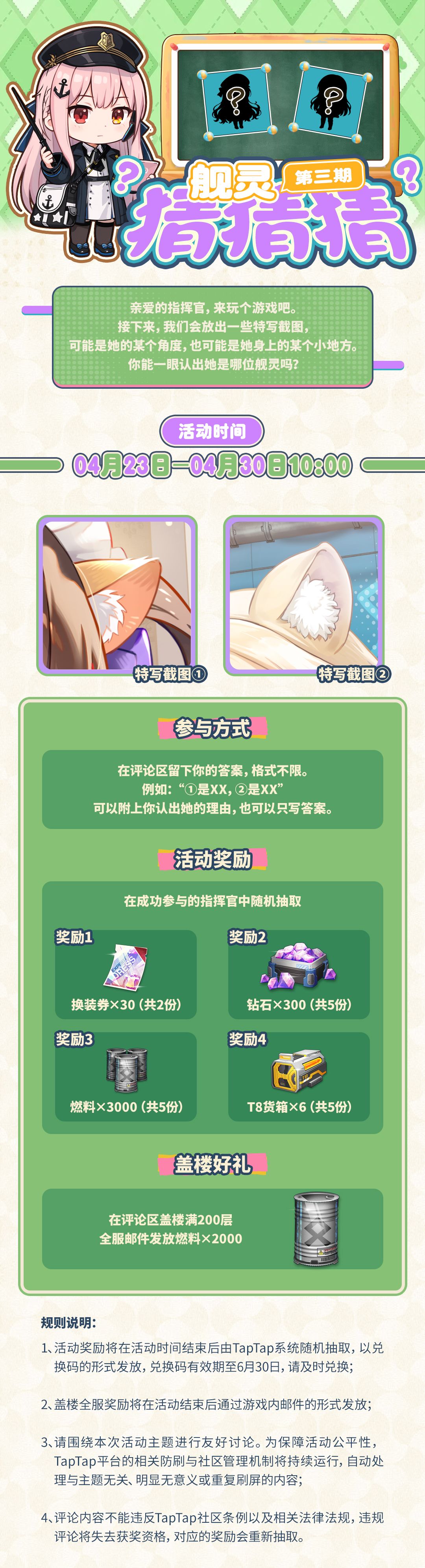 拂晓丨舰灵猜猜猜,第三期来咯!换装券、钻石和燃料等你拿!
