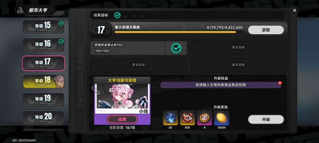 资源:紧接上文,武器池基本每个月白嫖一个(当然你得大亨高),任务回馈不成正比,往往巨大的一坨里面就给两次?还有那异象真的是想啥来啥,为了难而难,每当我点开地图准备享受一下的时候,为了下一次up却又不得不肝,肝了就算了,看着一天下来勉勉强强够的十抽,你释怀的笑了,这个时候你可以发个帖子,孩子你赢了,杀死比赛了。