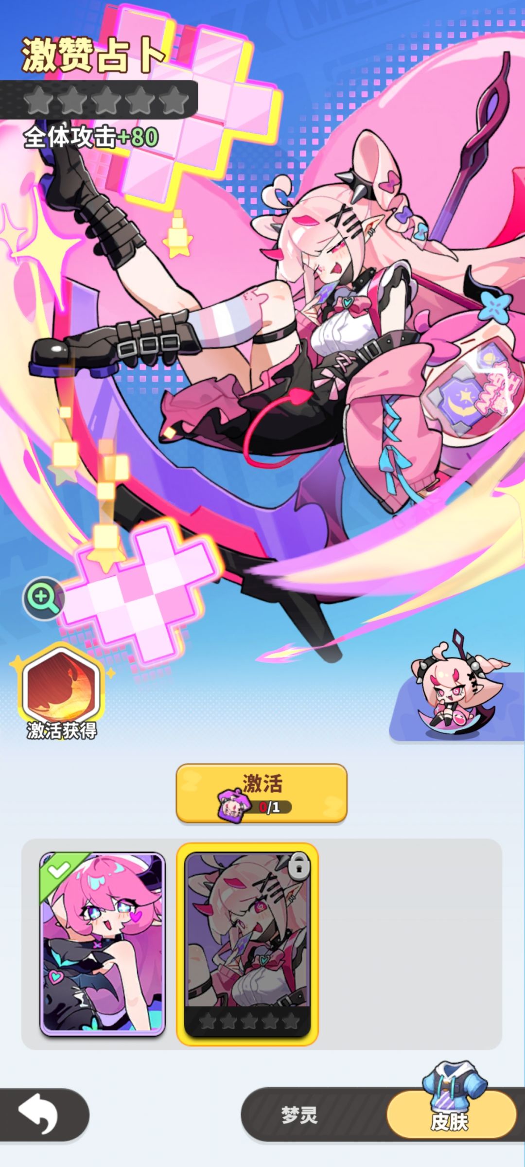 抽卡大概抽了有四五十次吧,除了初始角色就出了一个紫皮的新角色,另外累抽有奖励,其中包括新角色和各种资源道具。我个人挺喜欢这种画风的立绘的,大部分角色还有皮肤,不过游戏中是Q版形象。